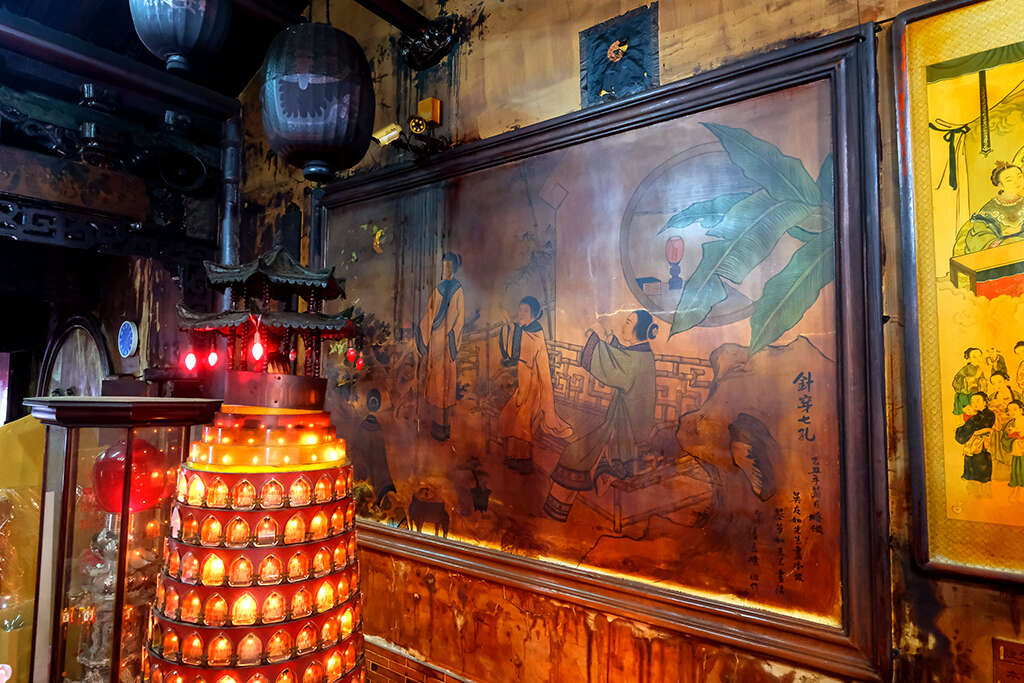 庙宇艺术内暗藏许多「潜规则」,决定了这些艺术品的位置与内容,「左字右画」就是规则之一。 庙宇壁面的装饰,包含了书法与绘画,一般认为书法的位阶是高於绘画的,加上庙宇「以左为尊」的传统,因此书法会放置於左侧(神明视角的左边),绘画则在右侧。