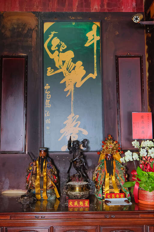 位於开隆宫後殿,单脚抬起,手持毛笔,有着鬼面人身的便是「五文昌」之一的魁星,古时主管文运,转换到现代,则成了保佑课业表现的神明。配合着魁星的特性,在神像装饰上,匠师也多会让魁星一脚踏在鳌鱼(龙头鱼身的传说动物)上,有着「独占鳌头」的吉祥意涵。 七夕除了是七娘妈的生日,也是魁星爷的生日,在这一天除了向七娘妈祝寿、观礼「做十六岁」外,也别忘了走到後殿,和魁星爷祝寿。 注:五文昌为文昌帝君、魁星星君、朱衣神君、纯阳帝君(吕洞宾)、文衡帝君(关公)。