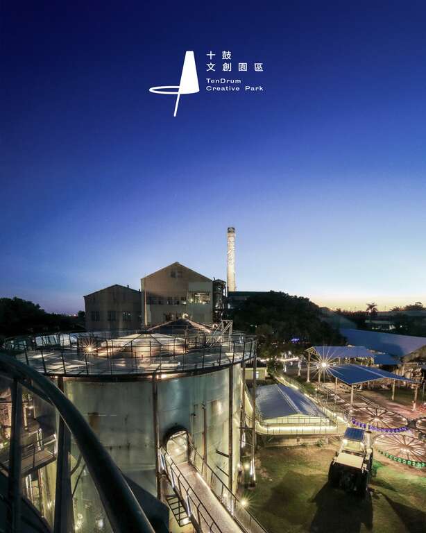 十鼓文创园区占地约7.5公顷,共有22座日治时代建筑之旧仓库及制糖工厂之工业遗产的活化再造,结合十鼓击乐团的定目剧表演,让废弃糖厂内的珍贵工业遗产摇身一变成为文创及无动力低碳极限体能运动场域,奏出糖业文化及鼓乐艺术交融的「糖鼓二重奏」,将文化艺术与生活美学融入休闲日常,并期许十鼓文创园区成为散播台湾文创的希望种子。