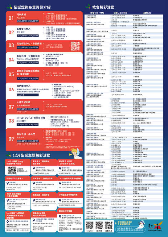 2025台南圣诞灯节暨全市圣诞月相关主题活动资讯