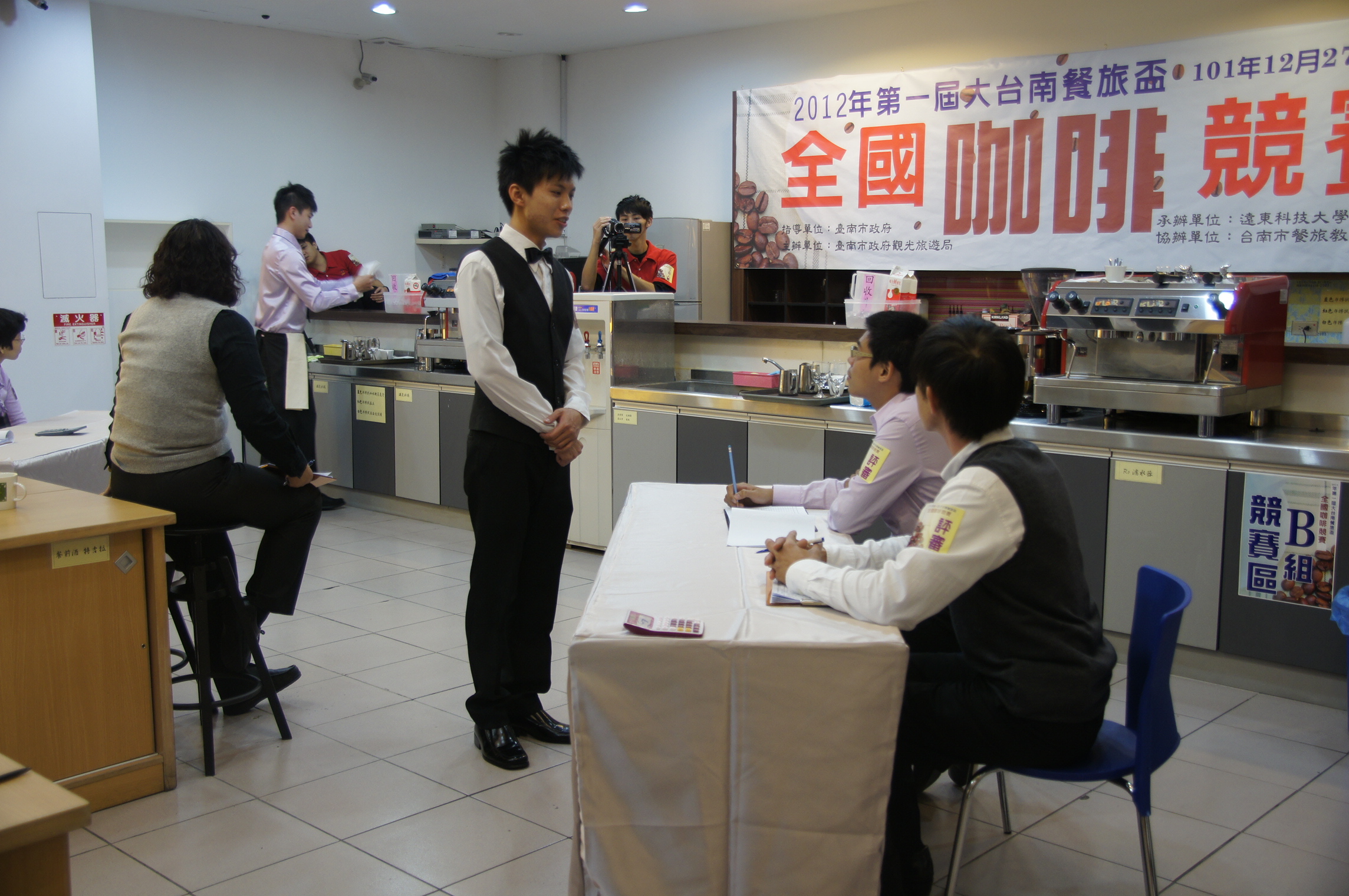 2012年第一届大台南餐旅盃全国咖啡竞赛於12月27日(四),在远东科技大学餐饮管理系调饮教室举行。参赛名次已於晚间8点出炉,大专组由远东科技大学李荣耀同学抡元,高中职组冠军则由嘉义市兴华中学余学甫获得。报名参加本次竞赛的学生相当踊跃,从北部至屏东的学生均热情参与,高中职组有15间学校计53位学生报名,大专院校组则有8间学校计21位学生报名,参赛者共计74名。 主办单位台南市政府观光旅游局表示:近年来营造城市生活风貌为推广观光行销之一环,咖啡调饮亦蔚为风潮,办理此次竞赛是希望提供热爱咖啡制作的餐饮相关科系学生能有相互观摩学习机会,及专业技能之养成的竞赛平台,藉由竞赛活动能培植本市咖啡调饮的新兴好手,为业界发掘更多对咖啡有热情的新生代,也藉由此次竞赛与学校及产业界共同合作推广行销本市的美食观光文化。 本竞赛重点在於要在12分钟完成准备试萃咖啡与试打奶泡,且制作2杯相同成品的卡布奇诺(Cappuccino)咖啡2杯,还要服务茶水与介绍成品,参赛学生不仅需有专业技能并且要能展现出自信与对咖啡的热情。竞赛采高规格标准评审,特别邀请曾担任台湾咖啡师大赛主审的冯静安副教授、国际COE咖啡大赛冠军选手教练李美娟、亲手烘培本次比赛特调咖啡豆的尚品咖啡张硕峯经理、多次担任全国技术士技能检定评审的高雄餐旅大学刘秀慧主任以及美国SCAA咖啡品质监定评审陈泓旗老师参与评判。 评审们表示:本次竞赛除要注意制作过程的卫生及善後清洁外,成品的奶泡组织需呈现绵密光滑、厚度要达1公分以上,完整包围咖啡杯边缘呈现饱满和谐的组合,选手也要能清晰表达作品的风味口感,运用正确的服务礼仪展现自信及对咖啡的热情。透过这次比赛大家可以互相观摩学习,也希望同学们能保持热诚勇於接受挑战,多多磨练,让技艺更为提升。 承办单位远东科技大学表示:此次竞赛使用之特调城市风味豆采高比例Arabica混调,香气浓郁口感饱和,味蕾跳动性佳,Espresso萃取油脂丰厚,浓稠度极佳,与牛奶调配亦有令人惊喜的感觉,参赛者打出的奶泡呈现绵密、光滑的口感,让咖啡与牛奶和谐组合,愈发引人啜饮的向往。本次竞赛活动除强化青年学子咖啡调制的技能与文化素养外,并希望促进观光发展、产学合作之交流,增加城市新生活品味。 【本案新闻联络人:台南市政府观光旅游局 府城观光科许小姐06-2991111分机7832】