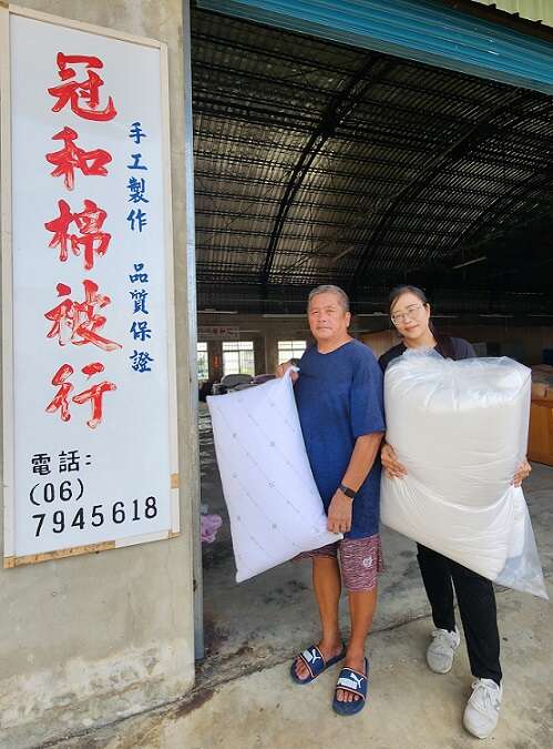 蔡顺龙说,以前大家都住透风的竹笼茨,棉被要8到12斤才够暖。但因温室效应和建筑型态改变,一般公寓大楼都有气密窗,时下以5到7斤最受欢迎,也有人喜欢10斤的重量感,睡起来更安心。手工棉被材质天然、吸湿透气不闷热,特别适合台湾海岛型气候,只要适时曝晒,一件可以用上数十年。目前除了帮品牌代工、客制,他也在淡季提供旧被翻新服务。印象最深的是一对老夫妇送来60年旧被,翻新难度相当高,而且一般师傅考量卫生问题不愿意接,但每个客人的要求背後都有故事,他也体恤惜物念旧的心情,努力延续其纪念价值。