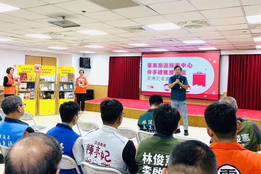旅游服务中心为行销台南观光的重要据点,台南市政府观光旅游局特别於台南火车站及高铁台南站等两大交通枢纽之旅游服务中心设置「伴手礼推广专区」,并与「台南市府城文化观光产业协会」、「台南市文化观光伴手礼产业发展协会」、「台南市糕饼商业同业公会」及「台南市东山咖啡产业发展协进会」等本市观光公协会合作,共同推荐具代表性之优质伴手礼品牌。本次宣传记者会活动由台南市政府观光旅游局林国华局长、朱正轩议员、许至椿议员本人亲临现场,及王定宇立委、林俊宪立委、蔡筱薇议员、沈震东议员、陈怡珍议员、蔡宗豪议员、周嘉韦议员、林美燕议员、李启维议员、郭信良议员、蔡淑惠议员、卢崑福议员、李宗霖议员服务处代表、台南市观光相关公协会理事长莅临参与,共同启动台南旅游服务中心创新服务。
