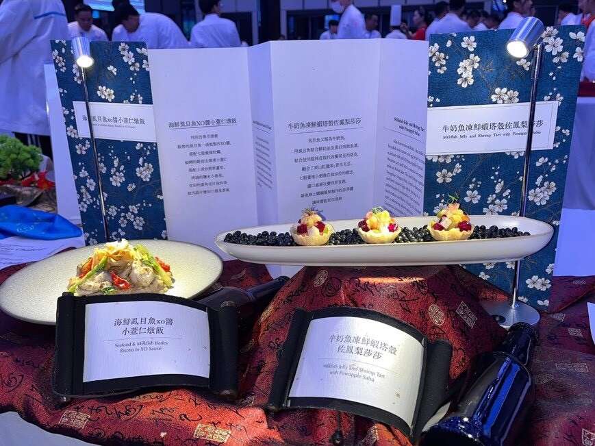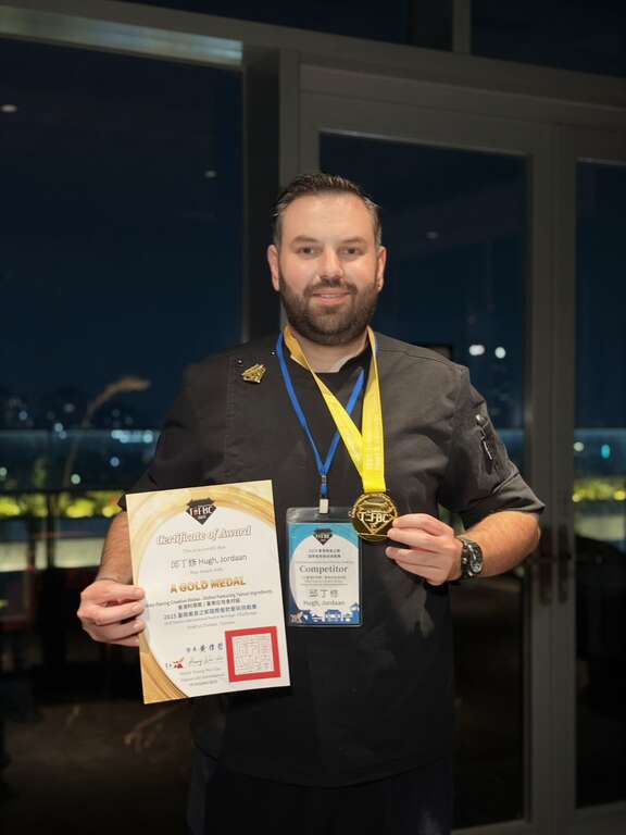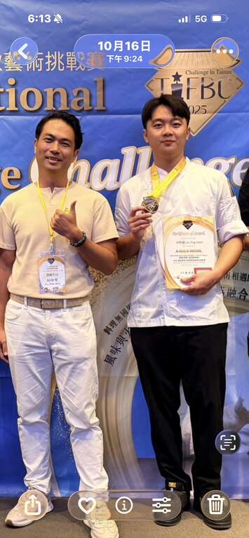 主场地主队台南晶英酒店同样表现亮眼,以使用台湾鲷搭配台南在地食材,融合新派粤菜料理手法来呈现,让大家对台湾鲷有不同的认识。主厨周黄建文说:「《台湾鲷三重奏》是一道融合在地风味与创新理念的作品。很荣幸能在餐酒料理类比赛中获得金牌,感谢评审与主办单位的肯定。未来我会继续以料理讲述土地的味道,让更多人透过一口美食,品味台南与台湾的精神,也让世界品嚐台南的味道。」