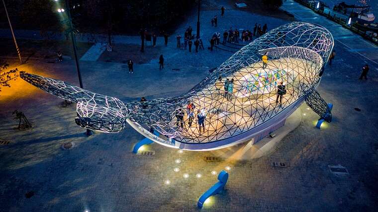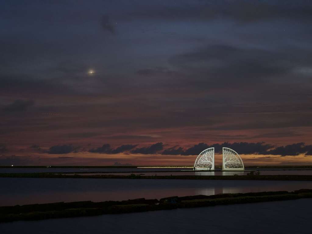 杨士毅的年少十分灰暗也曾迷惘,他心想既然无法改变困顿的环境,索性将生活视为磨练生命的健身房,透过不断的提问思考,令自己更懂得理解与疼惜别人,并转化於艺术创作中,让每次的作品都可以成为别人在人生路途上的一点力量与风景。他将对社会的观察,写下《大鱼的祝福》故事,之後具象延伸成安平港滨历史公园的大型装置艺术,希望让大家意识到,在汪洋大海中,还有我们所立足的这座岛屿在承载与疼爱我们,就像一股永恒陪伴的力量,提醒岛上的人不分族群应该彼此包容善待。同样的理念也展现在青鲲鯓的「生命之树」,他从贫瘠的盐田里感受到生命的韧性与意志力,相信只要心中坚定方向,海水也会为你让路。以象徵生命力的大树在盐田中生长,并打造成一条朝圣之路,除了让人领会盐分地带的生活精神,也引导人在步行中沉淀自我,明确自己的方向,坚定前行。也因为一直以来秉持着创作初衷不为艺术,只是想给人幸福与力量的理念,而让美商苹果公司找他合作。