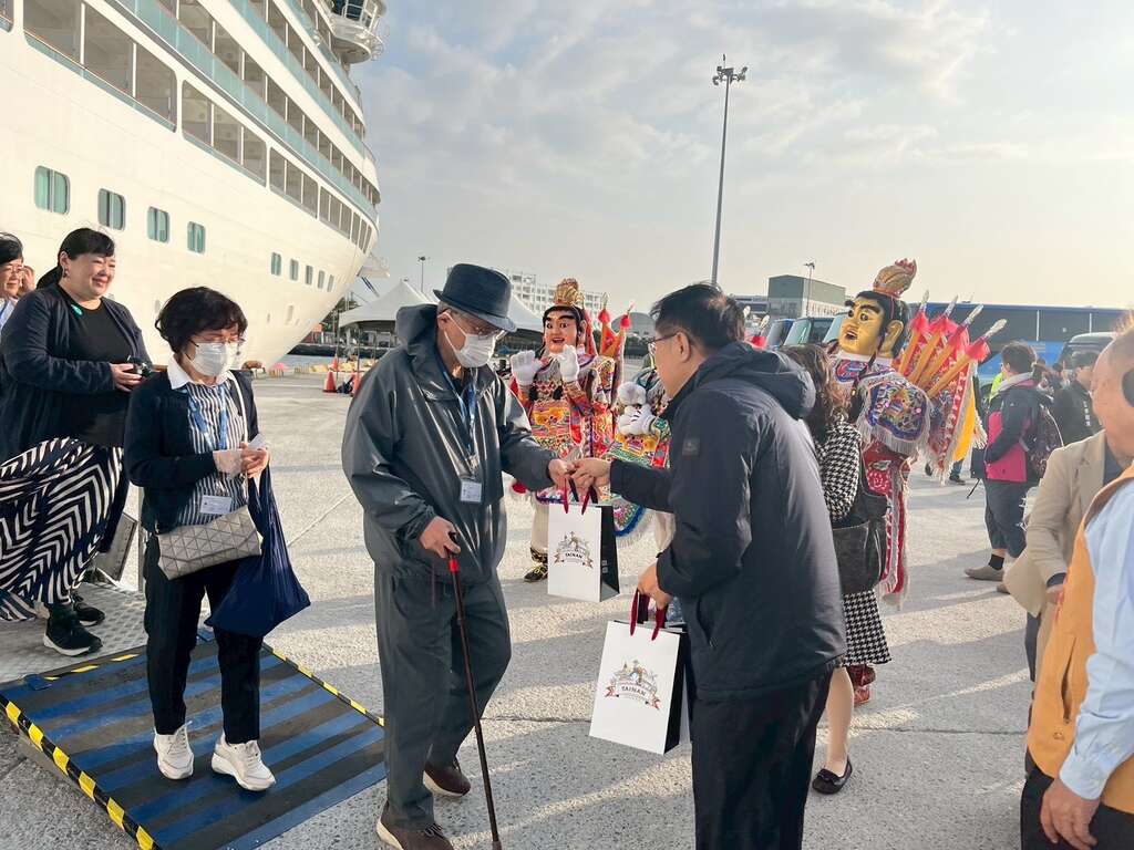 国际豪华观光邮轮海洋富士号到访安平港 黄伟哲市长亲迎旅客并赠礼推广台南观光