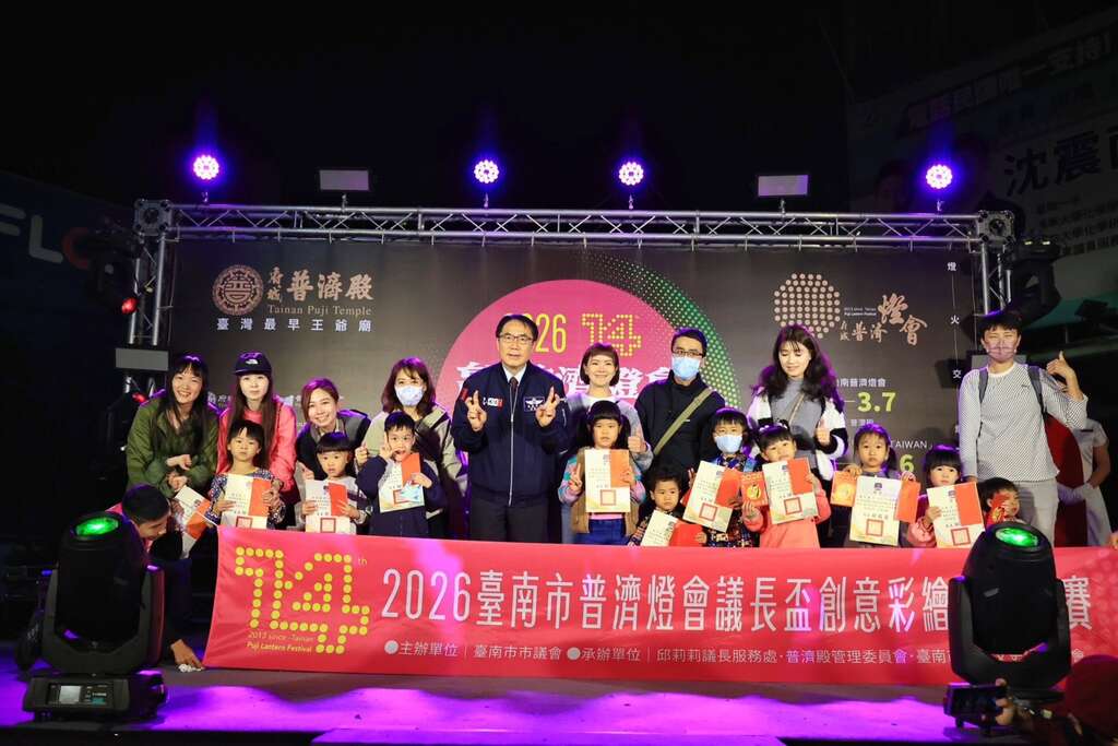 开幕典礼并同步举行「2026 台南市普济灯会议长盃创意彩绘花灯比赛颁奖典礼」,今年更有来自台南市友谊城市—日本宫城县仙台市200件作品共同参与国际共创,并由荣美金郁金香酒店特别加码设立三项国际友谊奖,为灯会注入更多跨文化能量。