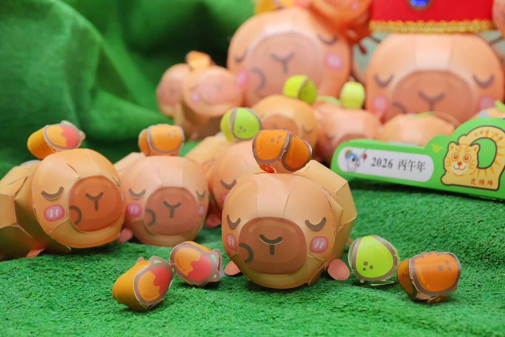 黄市长说,今年化身小提灯的卡比胖拉头上顶着的除了「芒果」以及卡比胖拉最爱的「桔子」外,还增加了「柚子」,都是台南每年不同季节盛产且鲜甜好吃的水果,要藉人缘极佳、疗癒系的卡比胖拉祝福大家2026年「柚萌柚甜」、「大桔大利」、「光芒万丈」并行销台南优质农产品。圆圆萌萌且慵懒疗癒的水豚搭配悠闲静谧的埤塘水域,代表的就是台南自然、放松、慢活的旅游节奏,邀请大家在今年二二八连假来台南走逛埤塘景区拿提灯。