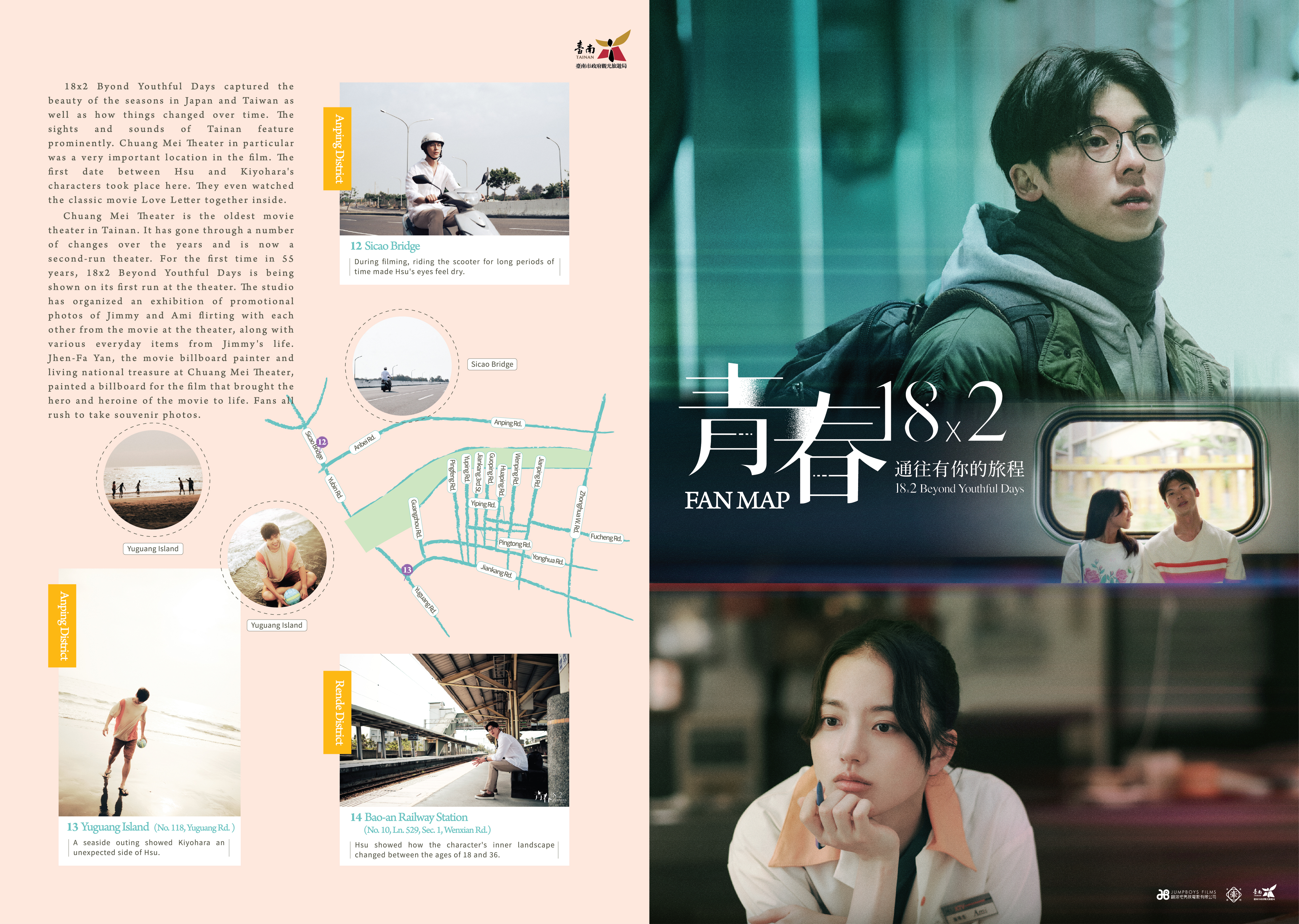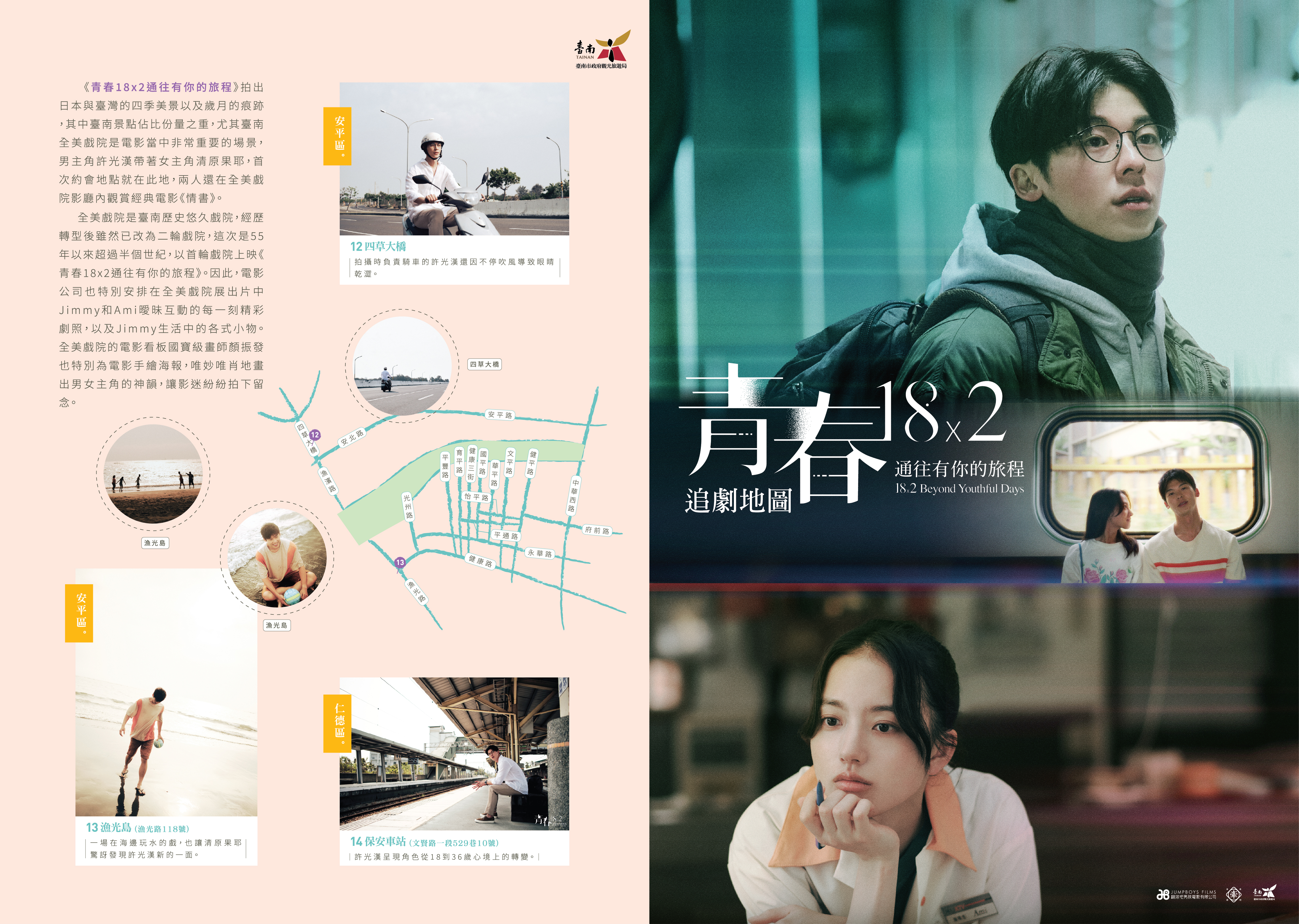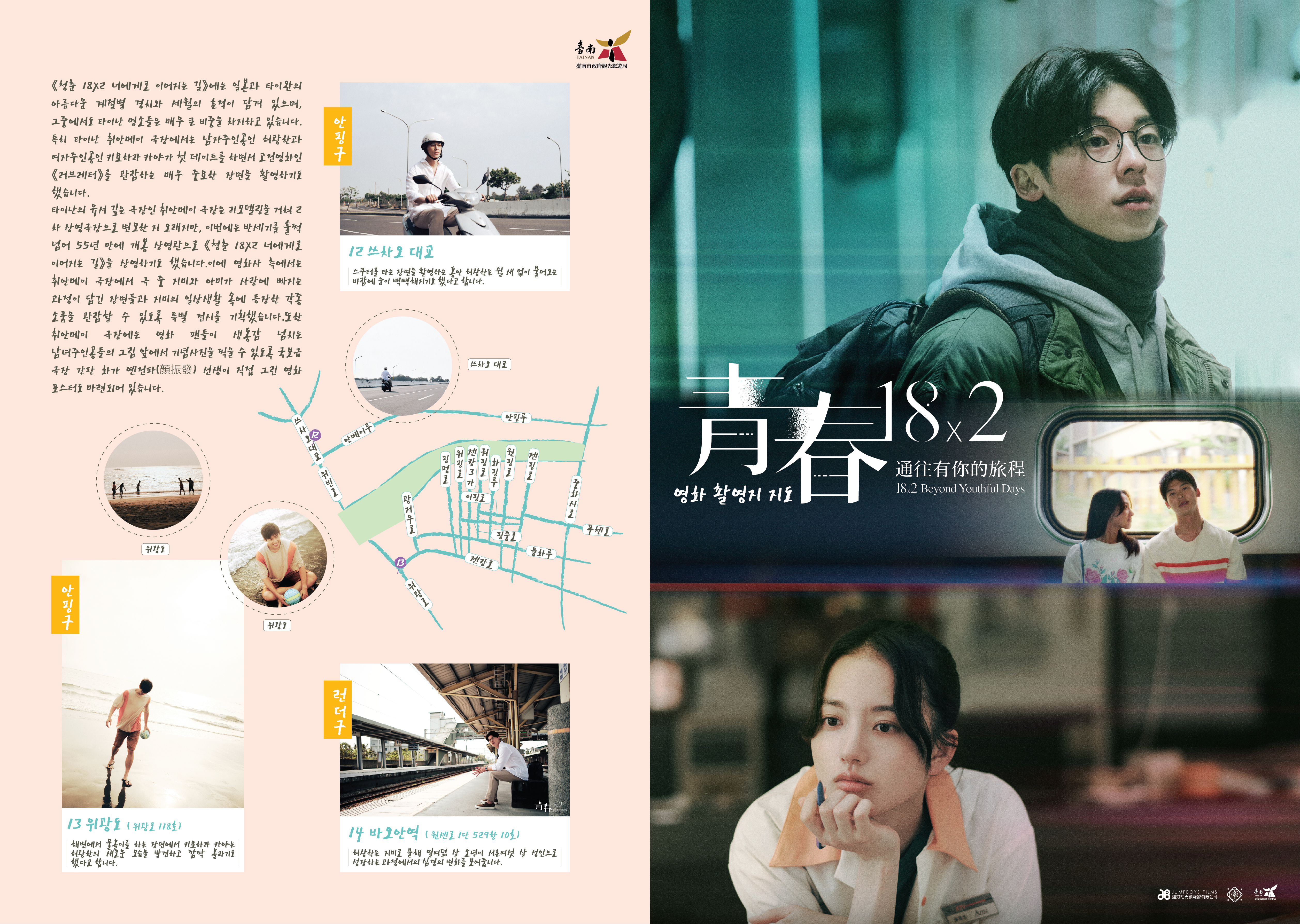 类别戏剧景点导览地图附件档案《青春18x2通往有你的旅程》中文版_A(.jpg)《青春18x2通往有你的旅程》中文版_B(.jpg)《18x2 Byond Youthful Days》_English_A(.jpg)《18x2 Byond Youthful Days》_English_B(.jpg)『青春18×2 君へと続く道』ロケ地マップ_A(.jpg)『青春18×2 君へと続く道』ロケ地マップ_B(.jpg)《청춘 18X2 너에게로 이어지는 길》영화 촬영지 지도_A(.jpg)《청춘 18X2 너에게로 이어지는 길》영화 촬영지 지도_B(.jpg)相关照片 问题回报上一则 回列表 下一则