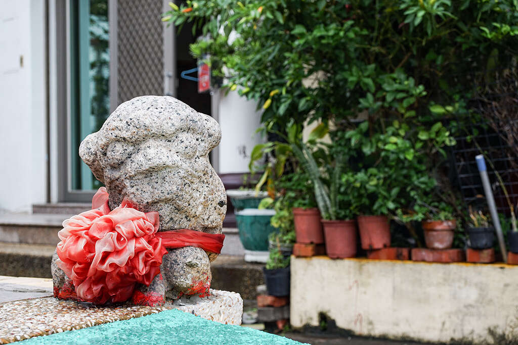 廟埕小石獅只有三十公分左右的高度,身材嬌小