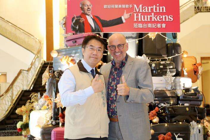 Dutch singer Martin Hurkens, who impressed Tainan with the world-famous song “You Raise Me Up” in 2020 Tainan City Christmas and New Year Event Series, pays his second visit to Tainan under Mayor Huang Wei-che’s invitation. After completing the required home quarantine, he will soon be ready to meet the excited Tainan citizens.