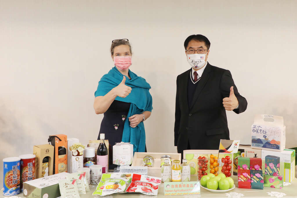 Huang Wei-che also took this opportunity to introduce Tainan’s agriculture products to the guests. He explained that Tainan has abundant produce and the dried fruit snacks made with local fruits are very popular among foreign visitors.