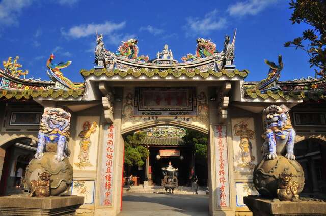 1798年に建てられた火山碧雲寺の外観は、今でもほとんど変わっておらず、古寺には閩南と日本のスタイルが融合されています。後方の枕頭山脈を背景に、古色蒼然とした景観が広がります。碧雲寺の前方には、「出米洞」と呼ばれる洞窟があります。この洞窟には地元に伝わる奇談があります。かつて出米洞からは毎日寺で食べるのにちょうど良い分量の米が流れ出てきましたが、欲張りな僧侶が米を独り占めしようと掘ったため、二度と米が出てこなくなったという話が語り継がれています。 寺は厳かな静寂に満ち、観音様の慈悲深いお顔が、見るものの心を落ち着かせてくれます。廟の前の広場は視界が開けていて、嘉南平原全体を見渡すことができます。夕陽の光芒が幾筋も降り注ぎ、前方には山を背に建てられたハイキングコースの東屋が見えます。非常に美しい景観で、写真好きに人気の撮影スポットになっています。また、夜の帳が下り、街に明かりが灯ると、台南の夜景スポットに早変わりします。