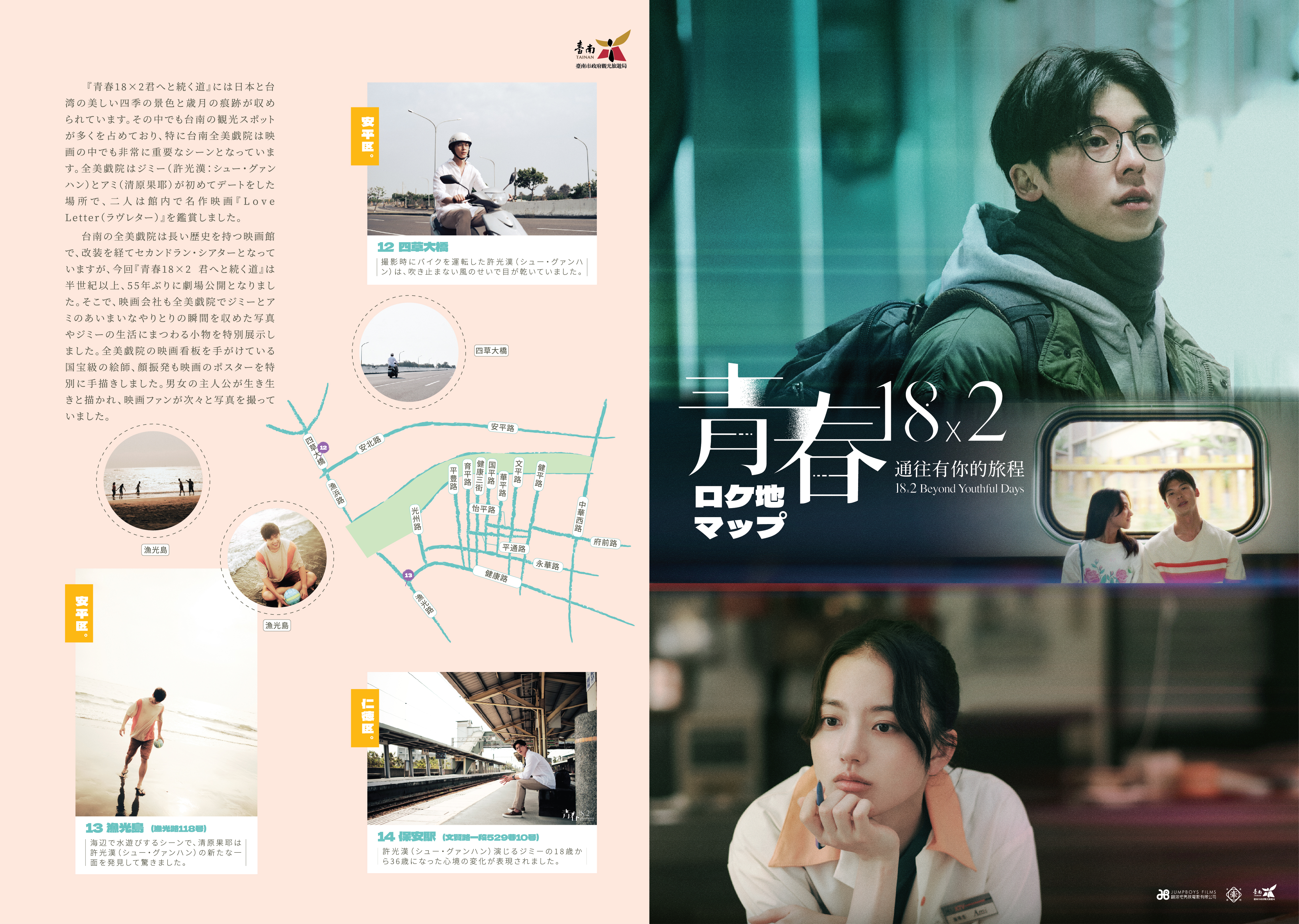 类别戏剧景点导览地图附件档案《青春18x2通往有你的旅程》中文版_A(.jpg)《青春18x2通往有你的旅程》中文版_B(.jpg)《18x2 Byond Youthful Days》_English_A(.jpg)《18x2 Byond Youthful Days》_English_B(.jpg)『青春18×2 君へと続く道』ロケ地マップ_A(.jpg)『青春18×2 君へと続く道』ロケ地マップ_B(.jpg)《청춘 18X2 너에게로 이어지는 길》영화 촬영지 지도_A(.jpg)《청춘 18X2 너에게로 이어지는 길》영화 촬영지 지도_B(.jpg)相关照片 问题回报上一则 回列表 下一则