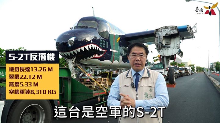 機身長達13.26 M,翼展更達22.12 M,高度有5.33 M的S-2T反潛機在已於7/15在 安平定情碼頭-德陽艦園區架設完成,加上原有的 #德陽艦、M5A1輕戰車、M8自走榴炮車,可說陸、海、空三軍齊備,我們也蒐集台南 #軍史景點 編製成「穿梭古今戰場 解讀臺南軍事史」摺頁地圖供民眾免費索取,各位軍事迷們,千萬別錯過啦,先來一睹「#鯊魚機」S-2T反潛機的接機過程吧!