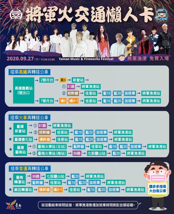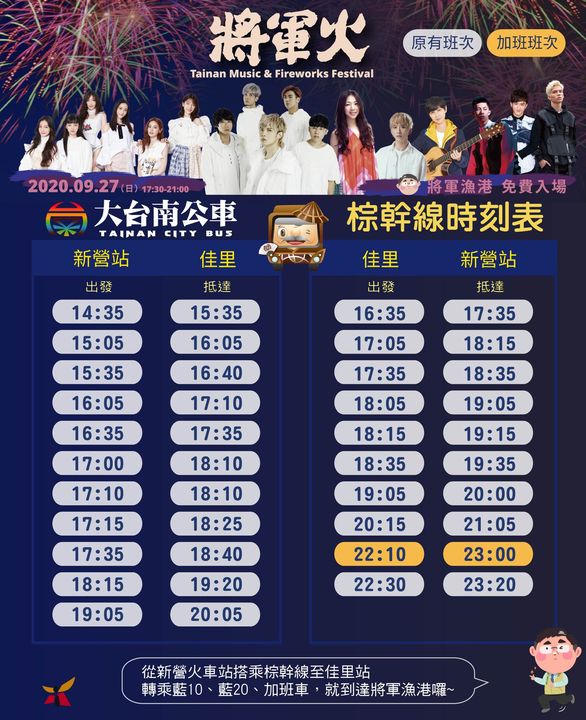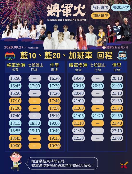 ❣如活動結束時間延後,將軍漁港散場加班車時間將配合順延