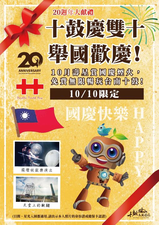 #十月壽星x國慶x免費x煙火x十鼓x雙十x臺南x無限暢玩