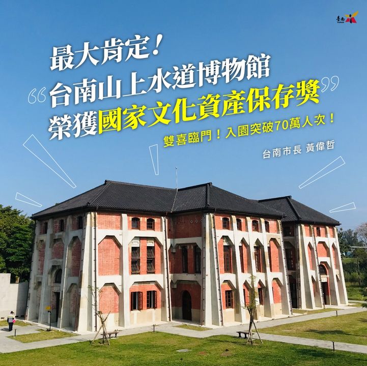 剛迎接第70萬名入館貴賓 #臺南山上花園水道博物館 獲文資界奧斯卡獎之稱的 #國家文化資產保存獎~