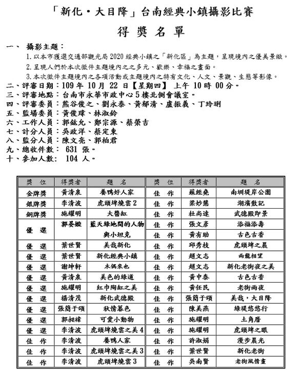 經過一輪一輪的精選,「新化‧大目降」臺南經典小鎮 #攝影比賽 得獎名單出爐啦!