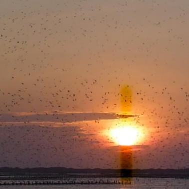 夕陽西下,傍晚差不多4點多的時候,上萬隻黑腹燕鷗在天空盤旋飛舞,場面壯觀,也是
