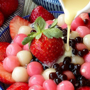 浮誇系「草莓布丁冰」,還有添加起士奶蓋的「草莓奶蓋布丁冰」,紅通通堆高高滿滿的模樣,正是草莓控最期待的浮誇系冰品~