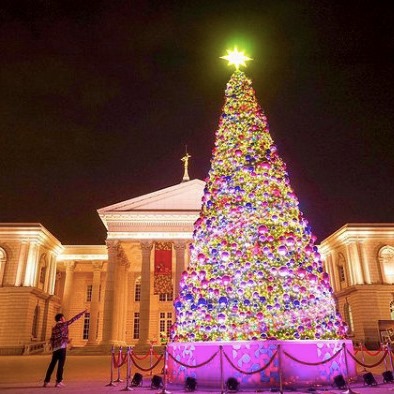 巨大的聖誕樹搭配博物館的歐風怎麼拍都美。