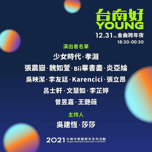12/18、12/19、12/26、12/27、12/31四大耶誕跨年活動卡司及時間一起報給大家~