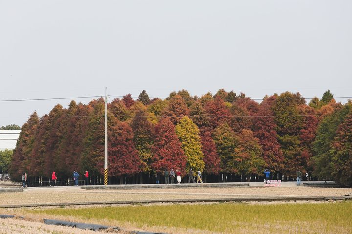 ,也是國家級濕地,有埤塘、農田和落羽松三景合一的特色美景,這裡的落羽松分散5處,每處落羽松數量約在100多株左右,各自獨立形成落羽松小森林。