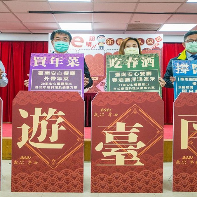 台南市黃偉哲市長表示,懂吃的老饕都知道,過年一定吃的豐盛、吃的美味,年菜和年貨都是返鄉過年不可或缺的必備好物,逾28家臺南安心餐廳於春節推出各樣特色外帶年菜料理;在購買年貨方面,為讓民眾在防疫之餘安心購買臺南年節好物,經發局推出線上年貨大街選購平台-「#臺南慶新年-#年節好物線上購」,有逾200家臺南優質商家推出精選年節禮盒,也有農業局推薦的農特產品一樣買得到;另外,農業局推行產品線上採購平台-「#臺南禮好-#一起購好年」型錄,邀集臺南21家農漁會、18位青農及優質業者,共同行銷臺南在地農特產品,每一項都是CP值爆表的優選產品,送禮自用兩相宜的好物,民眾可透過網路下單採購,讓民眾在家就可以安心享受台南貼心暖胃的春節氣氛,體驗專屬台南的在地年味。另本市多家旅宿業者、餐飲業者、觀光產業業者提供多項「#感恩醫護優惠專案」,就是要和大家一起撐醫護,感謝我們辛苦的醫護人員。