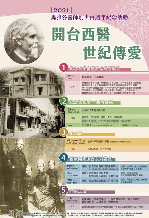 讓我們跟隨馬雅各醫生的腳步,回溯了解馬雅各醫生當時所遇到的人、事、物,豐富多元的故事以及基督教在台南發展軌跡,期待你(妳)一起來探詢。