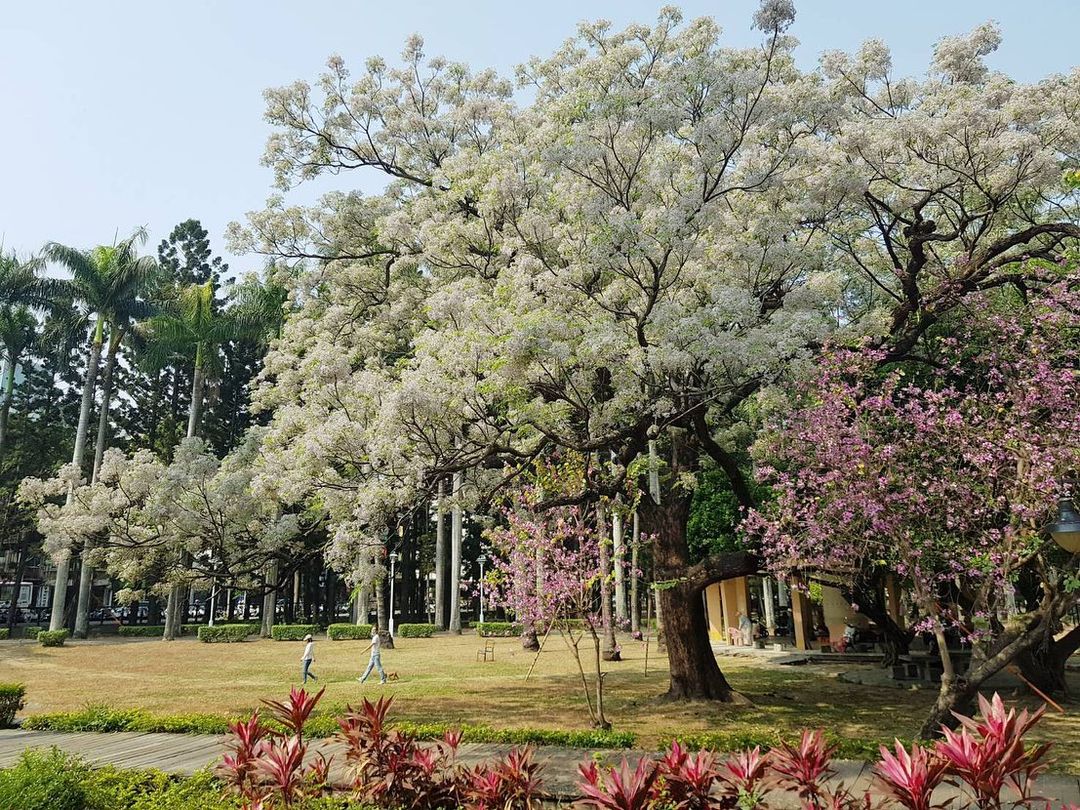 優雅的苦楝跟粉紅的羊蹄甲一起盛開😊