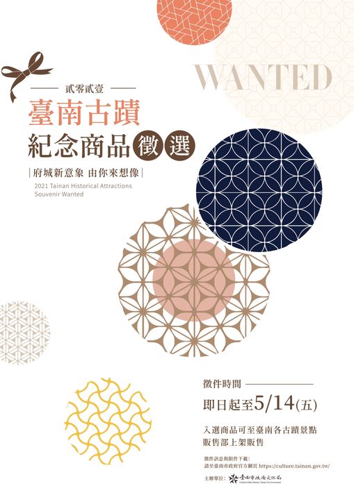 5/14 受理報名,凡依法立案之公司或行號均可參加 #110年臺南古蹟紀念商品徵選,凡經評選入選後的商品,將可於臺南各大古蹟景點販售部上架販售,讓古蹟成為你創意商品最強的通路與後盾,千萬別錯過大好的文創商機!