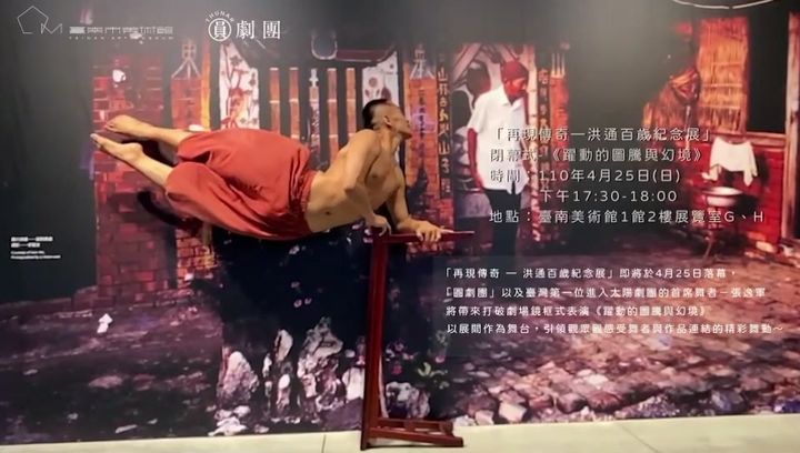 作為洪通第一次正式在美術館的個展,閉幕當天,邀請榮獲第18屆台新藝術獎的 「圓劇團」,以及臺灣第一位進入太陽劇團的首席舞者- #張逸軍帶來《躍動的圖騰與幻境》演出☝️