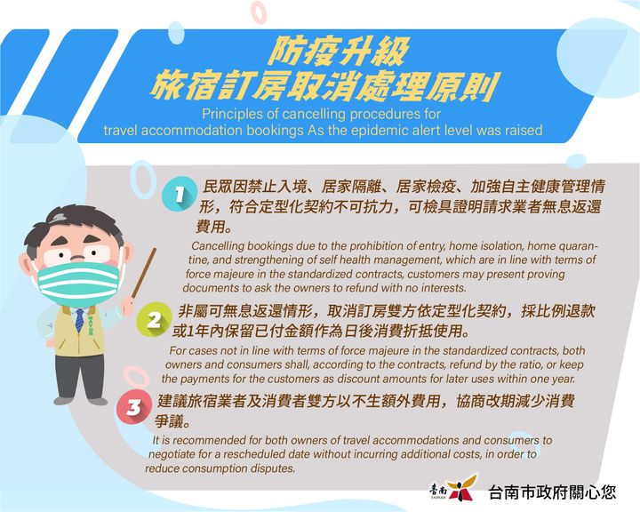 南市防疫升級! 旅宿訂房取消處理原則照過來~