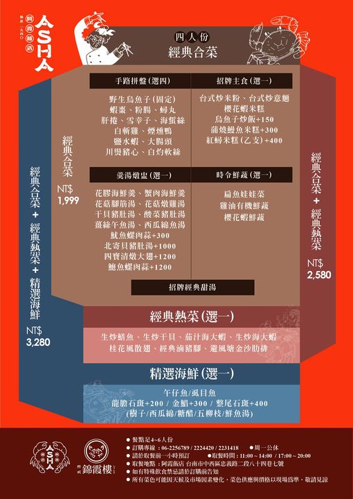 台南阿霞飯店超值優惠四人外帶經典合菜組,