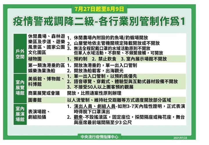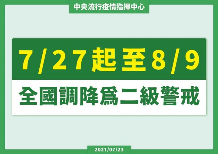 7/27至8/9全國調降為 #2級警戒