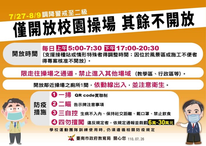 配合中央防疫降級各場域,於人流管制、設施開放及用餐等項目調整相關管制規範及指引~仍請大家遵守相關規定