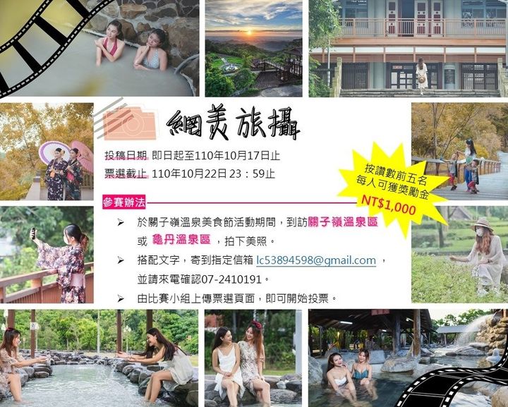 還有 #網美旅攝 票選大賽、 #關嶺慢旅 #風土旅行 可以報名哦!
