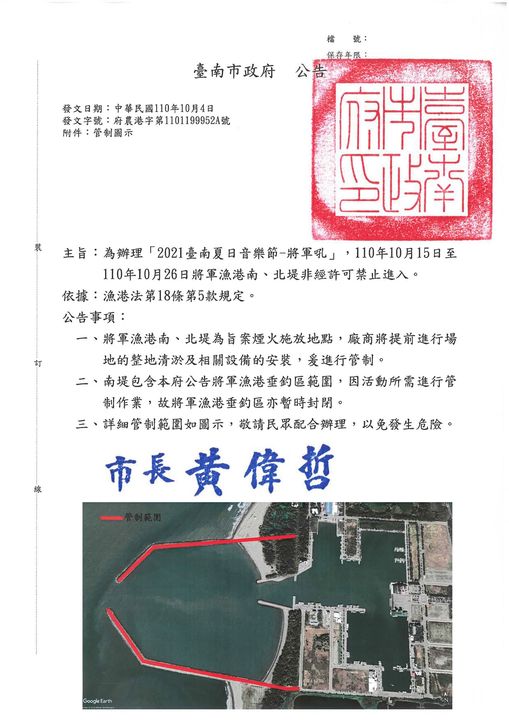 ⛔️10/24上午10:00至晚上9:30,往海商餐廳方向及往海巡署將軍漁港安檢所方向進行人車管制,主辦單位將視活動日現場風向及其他因素微調海上及道路管制。請民眾於活動日遵從管制人員指揮,勿闖入人車管制區域內,另也籲請全國各地船公司、漁民及船東,預先調整船程避免於海上管制時段進出將軍漁港,共同維護活動及自身安全。