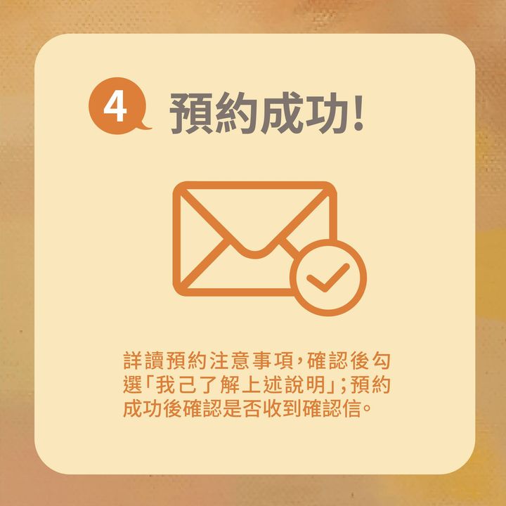 STEP❹ 詳讀注意事項,並勾選「我已了解上述說明」;預約成功後確認信箱是否收到確認信