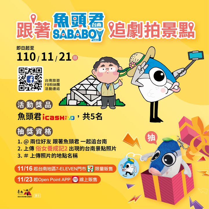✅ @兩位好友 並留言"跟著魚頭君 一起追台南"