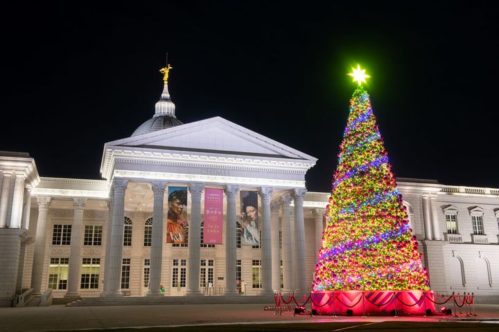 奇美博物館廣場聖誕樹昨晚開始亮燈啦,預計展示到2022年1/11(二),每日於17:30至22:00亮燈,週三休館仍會亮燈。