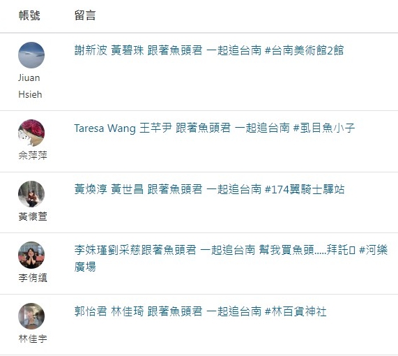 推廣台南觀光,這次符合抽獎資格共有190則