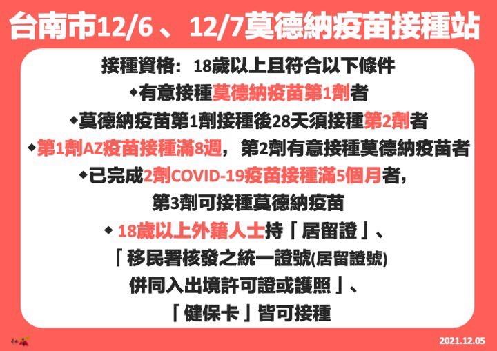 ⚠️台南市分時段於5區全聯門市、台南車站、台南文化中心開設莫德納疫苗接種站