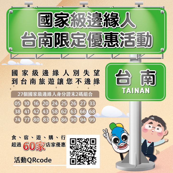 台南推出「國家級邊緣人台南限定優惠活動」📣