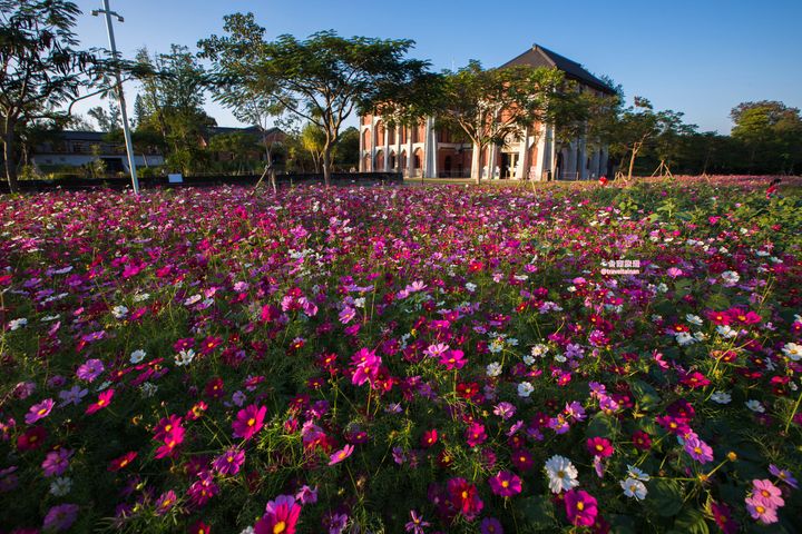 臺南山上花園水道博物館 波斯菊花海、白雪木 、紫花藿香薊,都已盛開,加上百年紅磚建築,營造出獨特的氛圍,今年一定要再來過~