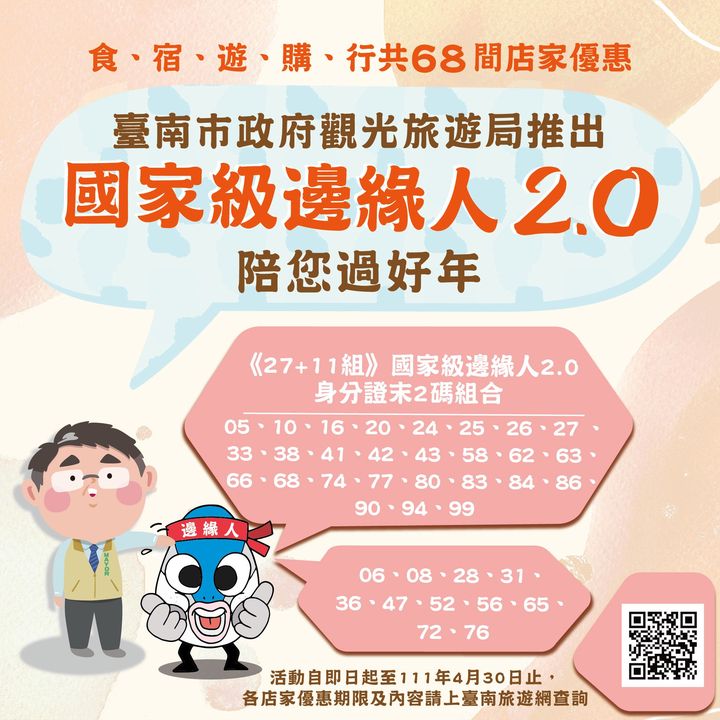 「國家級邊緣人台南限定優惠活動2.0」來啦!! 📣