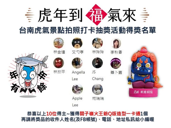 台南虎氣景點拍照打卡活動開獎❗