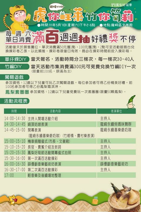 5/07 14:00~18:00 『虎你旺萊 竹你筍莉』農產業文化活動。