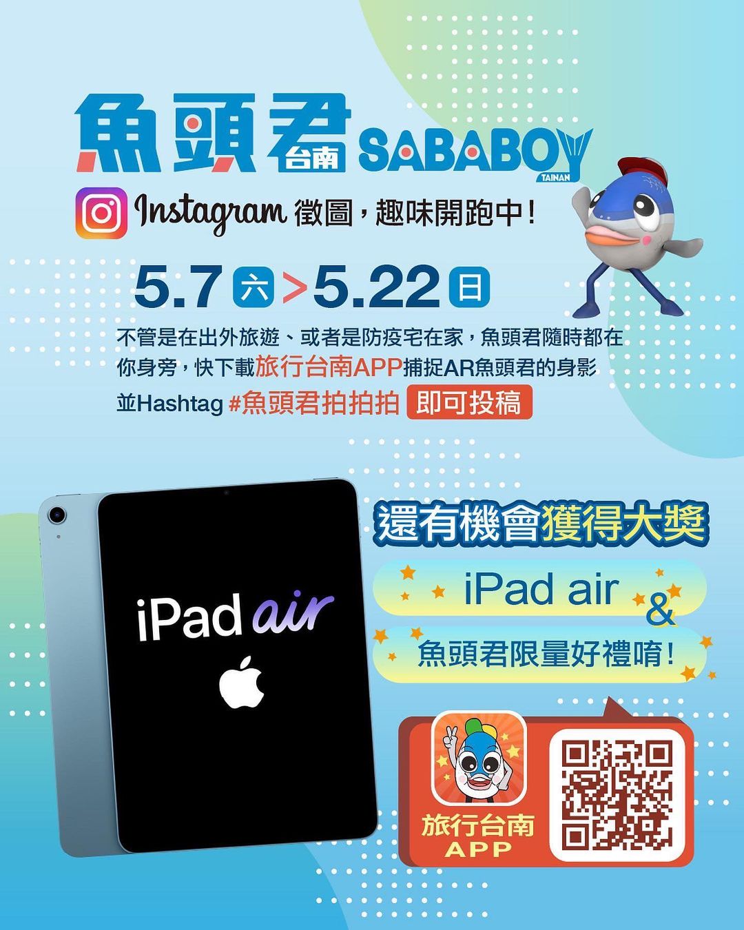 圖片不限定背景在台南,畫面中只要任一種AR魚頭君入鏡都可以參加活動喔!也歡迎二創,加圖片跟文字嘛ㄟ賽,只要遵守活動辦法規定即可,一起拍照拿大獎吧❤️